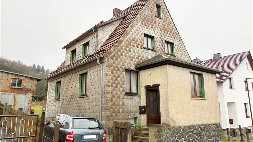 Sanierungsbedürftiges Einfamilienhaus in einer ruhigen Seitenstraße (Südstr.42) mit Blick auf die Inselbergschanze Brotterode. Das Haus wurde nach dem Bau im Jahre 1953 nicht weiter ertüchtigt und muss komplett saniert werden. Ein Bad ist derzeit nicht vorhanden und ein WC befindet sich nur auf halber Treppe. Die Immobilie ist komplett unterkellert und eine Heizung ist nicht vorhanden.