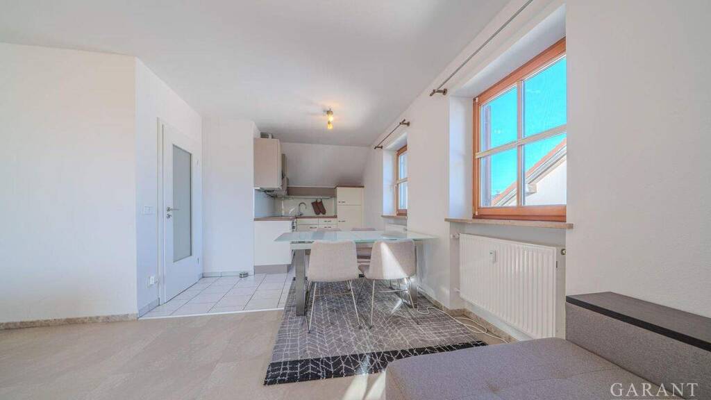 - Ca. 58,68 m² Wohnfläche - 2 1/2 Zimmer - Dachgeschosswohnung im 2. Obergeschoss - Zusätzlich nutzbarer Spitzboden mit ca. 30 m² (über Zugleiter erreichbar) - Kellerraum mit ca. 14 m² - Vollständig möbliert (Möblierung im Kaufpreis enthalten, ausgenommen TV) - Homeoffice-Bereich mit funktionaler Raumtrennung - Einbauküche mit Elektrogeräten (Baujahr 2018) - Zentralheizung (Öl) - Gemeinschaftlicher Waschraum im Keller mit eigenem Anschluss - PKW-Stellplatz im Innenhof - Weitere Besucherparkplätze direkt vor dem Haus
