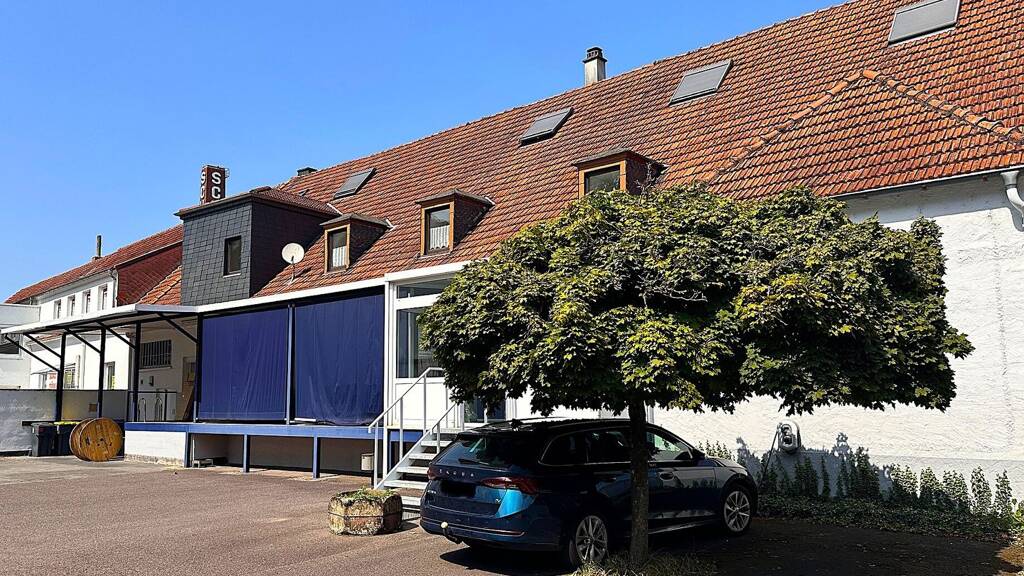 ca. 180 m² mit mehreren Eingangstoren und -türen.