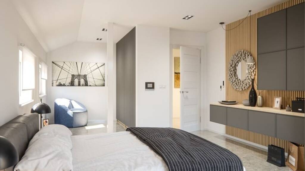 Das Dachgeschoss bietet Platz für zwei gleich große Kinderzimmer, das Elternschlafzimmer mit Ankleidebereich sowie das Bad.