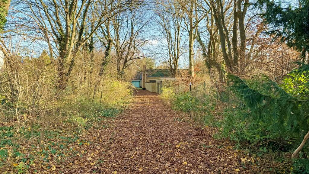 Das dahinterliegende Grundstück verfügt über eine Größe von 3.537 m² und es ist im Wesentlichen mit einem Bungalow aus den 1950/60er Jahren und einem Schwimmbecken bebaut, die sich beide in einem abrissreifen Zustand befinden.