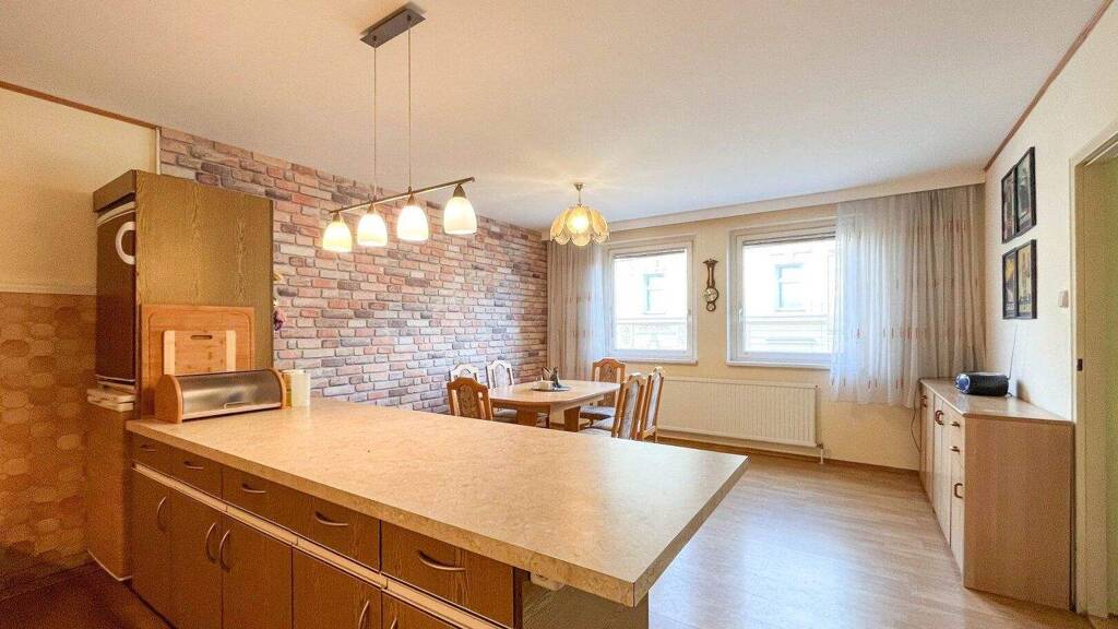 Geboten werden eine helle, großzügige Wohnküche mit Einbauküche und Bartheke sowie Platz für einen Esstisch, drei geräumige Zimmer mit vielfältigen Nutzungsmöglichkeiten (Schlafen, Kinderzimmer, Homeoffice oder WG), ein Badezimmer mit Badewanne und Waschmaschinenanschluss, ein separates WC sowie ein Abstellraum. Die Wohnung ist somit sowohl für Familien als auch für Anleger und Wohngemeinschaften bestens geeignet. Ein Kellerabteil und ein Fahrradraum im Haus runden das Angebot ab.