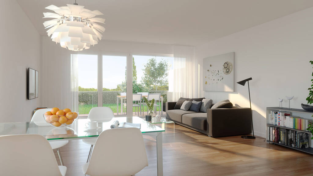 Unser Projekt „Leben am Schönberg“ bietet eine umfangreiche Ausstattung, die modernen Wohnkomfort und Eleganz vereint. Bodentiefe Fenster sorgen für lichtdurchflutete Räume und bieten einen freien Ausblick, während elektrische Rollläden oder Jalousien für optimalen Sicht- und Sonnenschutz sorgen.