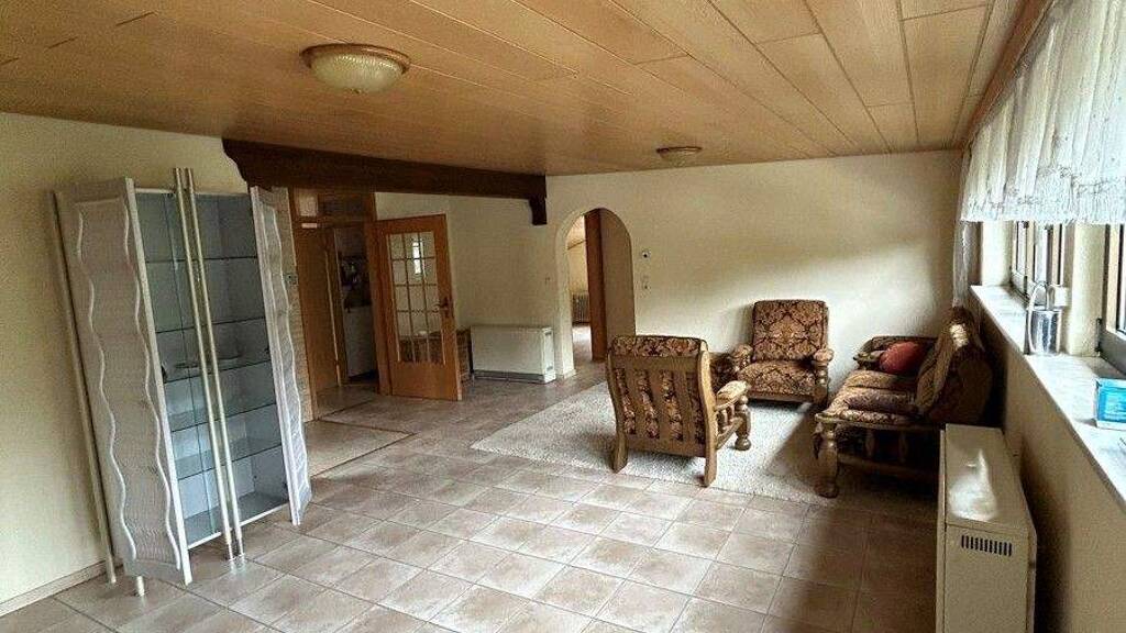 Sehr viel Platz mit reichlich Entfaltungsmöglichkeiten für eine große Familie bietet dieses Einfamilienhaus in gehobener Ausstattung, das auch als Mehrgenerationenhaus geeignet ist. Das gepflegte Anwesen befindet sich in bester Wohnlage in der Stadt Lebach in einer ruhigen Sackgasse, Durch eine Trennung im Zugangsbereich kann das Anwesen auch als Mehrfamilienhaus mit drei separaten Wohnungen genutzt werden. Es besteht kein Renovierungsstau, das Haus ist sofort bezugsfertig. Durch den großzügigen Eingangsbereich gelangt man in ein großes mit hellem Granit ausgelegtes Wohnzimmer mit Essbereich, woran sich die lichtdurchflutete Küche mit großer Arbeitsplatte und Frühstücksplatz anschliesst. Ein moderner Kachelofen verspricht gemütliche Familienabende und energiesparendes Heizen. Über die komplette Breite erstreckt sich ein solider Wintergarten der sich zum kleinen uneinsehbaren Garten mit Gerätehäuschen öffnet, der auch direkt von der nächsten Zufahrtsstraße erreichbar ist. Im linken Trakt des Erdgeschosses befinden sich die Privaträume, 2 Schlafzimmer und Badezimmer mit Dusche und Badewanne, wobei ein Schlafzimmer über einen Zugang zu Terrasse und Garten verfügt. Ein Gäste WC im Eingangsbereich vervollständigt den gelungenen Grundriss, insgesamt stehen hier ca. 140 qm Wohnfläche zur Verfügung. Die obere Etage teilt sich in einen hellen freundlichen Wohnbereich mit anschliessender offener Küche. Hier steht ein großes Schlafzimmer und Tageslichtbad zur Verfügung. Dieser Wohnbereich wird komplett elektrisch geheizt. Separat im Souterrain befinden sich die Kellerräume mit Heizung, Haushaltsraum (mit direktem Gartenzugang) und Vorratskeller. Diese Wohnebene bietet 2 weitere Zimmer, dazu eine geräumige Küche und Bad für eine vielköpfige Familie oder als abteilbare Wohnung zur Vermietung. Das Haus verfügt über zwei Garagen.