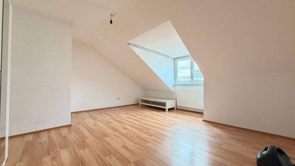 Der helle Wohn- und Schlafbereich lässt sich flexibel gestalten und bietet vielfältige Einrichtungsmöglichkeiten. Durch die Lage im Dachgeschoss entsteht ein besonders gemütliches Wohngefühl.