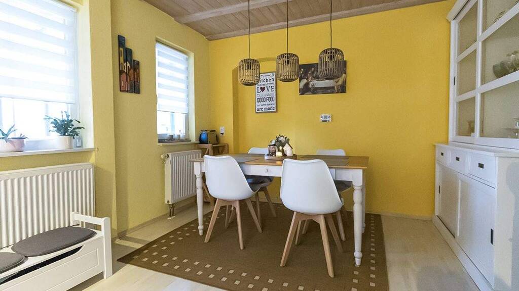 Dieses liebevoll sanierte Zuhause bietet modernen Wohnkomfort in einer behaglichen Atmosphäre. Nach einer umfassenden Kernsanierung im Jahr 2014 präsentiert sich die Immobilie in einem hervorragenden Zustand. Unter anderem wurde das Dach gedämmt und neu eingedeckt, die Fassade isoliert und die Fenster erneuert. Auf drei Wohnebenen laden lichtdurchflutete Räume mit attraktiven Laminatböden zum Wohlfühlen ein. Das Herzstück des Hauses ist die gemütliche Wohnküche mit Einbauküche und Kaminofen, ein Ort, an dem die Familie gerne zusammenkommt. Im DG begeistert das großzügige Studio mit vielseitigen Nutzungsmöglichkeiten, ob als Schlafzimmer, Kinderzimmer oder Homeoffice, hier sind Ihrer Kreativität keine Grenzen gesetzt. Für ausreichend Stauraum sorgt die angrenzende Scheune, die nicht nur Platz für Autos und Fahrräder bietet, sondern mit einer Durchfahrtshöhe von 3,45 m auch perfekt für ein Wohnmobil geeignet ist. Der eingezäunte Garten mit Freisitz rundet das Angebot ab und bietet sowohl Kindern als auch Vierbeinern eine sichere und geschützte Umgebung zum Spielen und Entspannen.