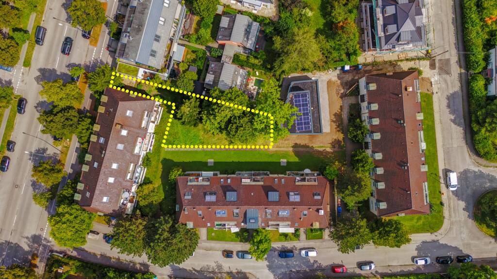 Dieses kleine und dennoch charmante Baugrundstück befindet sich im Innenhof einer eingewachsenen Wohnbebauung. Die direkten Nachbarbebauungen sind überwiegend Mehrfamilienhäuser und kleine Einfamilienhäuser. Das Grundstück ist derzeit unbebaut. Die Baugenehmigung (im vereinfachten Genehmigungsverfahren), für ein kleines Einfamilienhaus mit rund ca. 113m² Wohnfläche liegt vor und kann auf Wunsch gerne eingesehen werden. Die hier im Exposé verwendeten Illustrationen zeigen eine mögliche Bebauung. Die tatsächliche Bebaubarkeit müsste durch den Erwerber / -in geklärt werden – hierfür wird ausdrücklich keine Haftung übernommen. Auf Grund der Grundstückssituation wird dieses kleine, aber dennoch attraktive Grundstück zum absoluten Spitzenpreis angeboten. Der Bodenrichtwert in Großhadern / Blumenviertel beläuft sich Stand August 2024 auf € 3.300,-- / 0,7W. Daher ergibt sich hier nun die Möglichkeit, sich den Traum von einem Neubau-Einfamilienhaus zu erfüllen.
