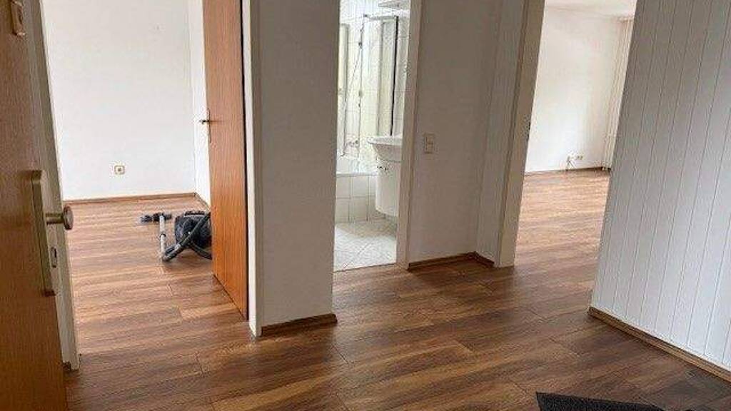 Die zum Verkauf stehende Wohnung ist im I. OG - belegen und verfügt über einen gut durchdachten Grundriss mit Einbauküche, Abstellraum, 3 Zimmern und Balkon. Das Wohn- und das Kinderzimmer sind derzeit zusammengelegt zu einem großen Raum. Dieses kann mit wenig Aufwand wieder unterteilt werden. Vor einigen Jahren wurde ein neuer Bodenbelag verlegt. Das Vollbad und Küche befinden sich in gutem Zustand. Zu der Wohnung gehört ein Kellerraum und die Nutzung eines Freistellplatzes auf dem Grundstück.