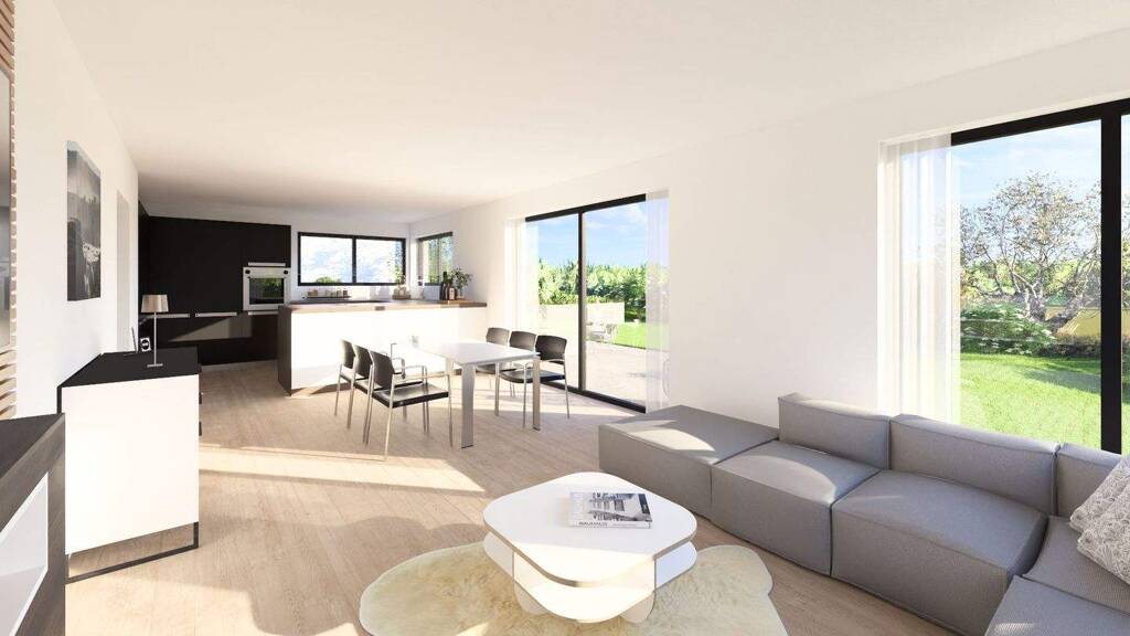 Das Haus richtet sich gezielt an junge Familien ebenso wie an anspruchsvolle Paare mit Homeoffice-Bedarf, die Großzügigkeit, Funktionalität und architektonische Qualität zu schätzen wissen. Der offen gestaltete Wohn-, Ess- und Kochbereich bildet das kommunikative Herz des Hauses und schafft mit seinen großzügigen Fensterflächen einen fließenden Übergang zwischen Innen- und Außenraum. Die konsequente Süd-West-Ausrichtung sorgt für eine hervorragende Belichtung über den gesamten Tagesverlauf und unterstreicht das helle, freundliche Wohngefühl.