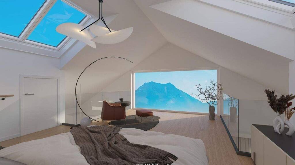 Hochwertige Architektur und durchdachte Raumplanung: Die moderne Architektur und die sorgfältige Bauweise sorgen für ein ansprechendes Wohngefühl, das sowohl ästhetische als auch funktionale Ansprüche erfüllt. Jede der barrierefreien Wohnungen zeichnet sich durch großzügige Raumkonzepte und gehobene Ausstattungsdetails aus. Große Fensterfronten lassen viel Licht in die Wohnungen und bieten herrliche Ausblicke auf den Traunsee und den Traunstein. Loggien, Balkone oder Terrassen laden dazu ein, diese atemberaubende Kulisse in vollen Zügen zu genießen.