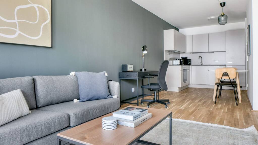 Mit Ihnen im Sinn entworfen In dieser Wohnung mit einem Schlafzimmer finden Sie einen durchdacht gestalteten Raum mit schönen Möbeln und einer voll ausgestatteten Küche. Und dank unserer hochwertigen Matratzen, luxuriösen Bettwäsche und Handtücher können Sie sich entspannen, denn Sie werden sich immer wie zu Hause fühlen. Wenn Sie Lust auf ein bisschen Spaß haben, können Sie die Wiener Atmosphäre genießen oder die Unterhaltung mit dem kabellosen Premium-Lautsprecher oder dem Smart-TV zu Ihnen bringen. Dieses Apartment bietet auch einen Waschsalon im Appartement.