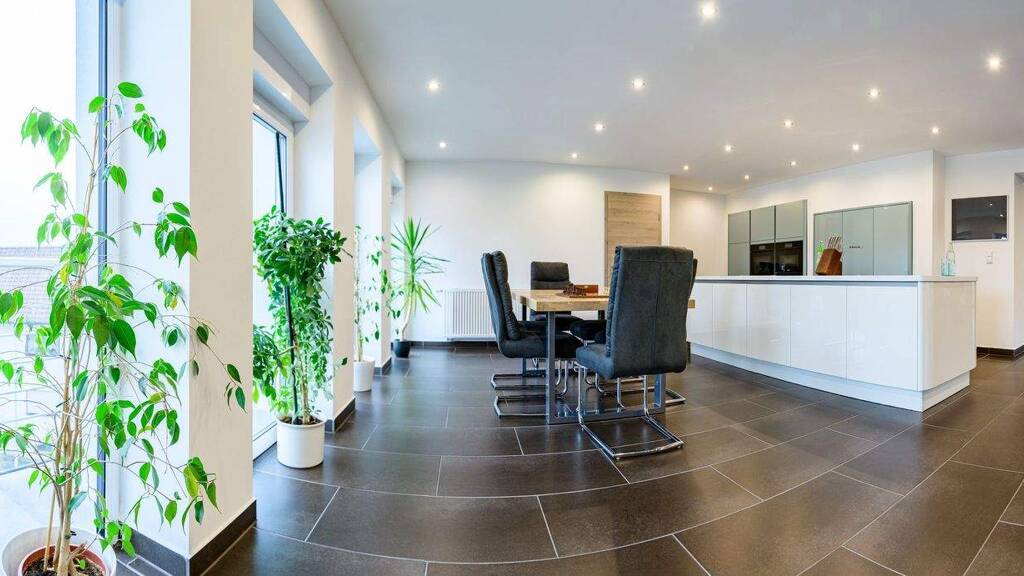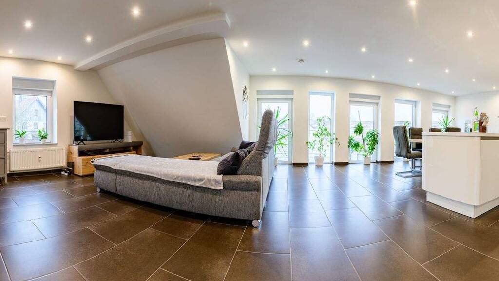 moderne Einbauküche mit freistehendem Küchenblock und Elektrogroßgeräten - praktische Speisekammer - großes Badezimmer mit freistehender Badewanne, bodentiefer XXL-Dusche, Doppelwaschtisch, WC und Waschmaschinenanschluss - zahlreiche Deckenlichtinstallationen - großzügiger Dach-Balkon - Wendeltreppe - Privatbereich in der oberen Etage - dreifachverglaste Isolierfenster in Kunststoffausführung - Gas-Zentralheizung - pflegeleichte, moderne und zeitlose Fliesenböden - Hausmeisterservice - mindestens 1 PKW Stellplatz zu erwerben - ein ausgelagerter Abstellraum - uvm...