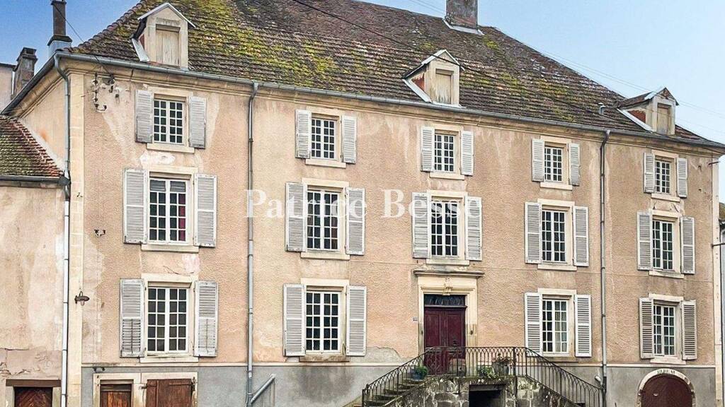 The edifice stands in the heart of the village, at the foot of the old feudal castle's remains. It faces traces of excavated cave spaces. Its remarkable, authentic facade with two flights of sandstone front steps edged with a wrought-iron balustrade looks down at the road. On the south side, its rear elevation is lined with a raised terrace that looks down at a garden with walls along its sides. The River Saône edges the garden lengthways. The house is extended with outbuildings crowned with tiled roofing. These include a workshop, a garage, a former secondary dwelling, a woodstore, a stable and a former bakehouse.