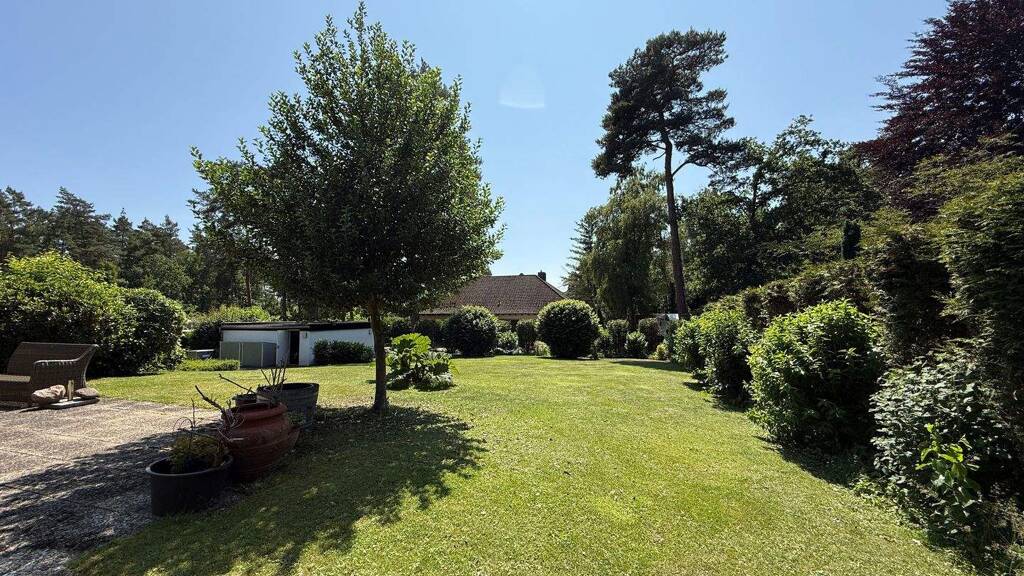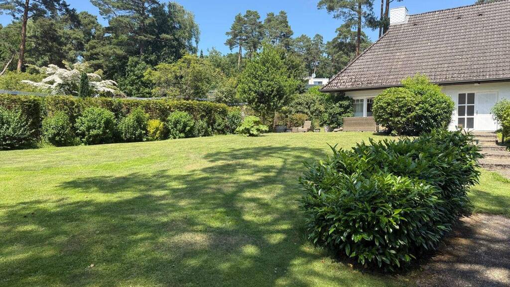 Auf rund 1.500m2 Grundstück genießen Sie einen sonnigen, gepflegten Garten mit großen Rasenflächen und begrünten Sichtbarrieren zu den Nachbarn sowie zur Straße. Dank der Lage am Ende einer Sackgasse ist das Grundstück besonders ruhig. Der perfekte Ort um sich vom stressigen Alltag zu erholen.