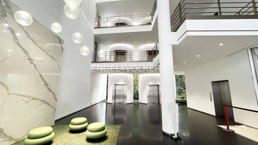 Das repräsentative Büro- und Geschäftshaus mit einer Gesamtfläche von ca. 18.500 m² wurde 1999 mit hochwertigen Materialien erbaut. Die horizontal gegliederte, sachliche Fassade aus Glas und Stahl lässt die unterschiedlichen Nutzungszonen des Gebäudes klar erkennen. Durch den betonten, elegant angelegten Eingang erreicht man die helle, markante Lobby. Die hochwertigen Büroeinheiten können zeitnah bezogen werden. In der hauseigenen Tiefgarage können bei Bedarf Pkw-Stellplätze angemietet werden.