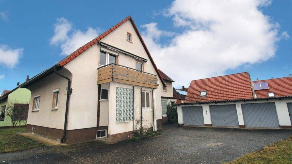 Zum Verkauf steht ein großzügiges Zweifamilienhaus im Erbbaurecht in ruhiger Wohnlage von Ipsheim. Das ursprünglich um 1957 erbaute Haupthaus wurde um 1967 durch einen großzügigen Anbau erweitert. Nun stehen Ihnen zwei separate Wohneinheiten zur Verfügung. Das Vorderhaus verfügt über ca. 110 m² Wohnfläche, ist unterkellert und bedarf Modernisierungs- und Renovierungsarbeiten. Das Hinterhaus bietet Ihnen eine Wohnfläche von rund 70 m² und ist ebenfalls unterkellert. Hier finden Sie noch einen unbeheizten Wintergarten mit direktem Zugang zum Freisitz im Garten. Die Immobilie bietet somit ausreichend Platz für die große Familie oder den Mehrgenerationenhaushalt. Die Aufteilung bietet natürlich auch eine Vermietung von zwei Wohneinheiten an. Auf dem rund 680 m² großen Grundstück befindet sich eine Reihengarage mit drei Kfz-Stellplätzen und einem Abstellraum. Der Bezug ist sofort möglich.