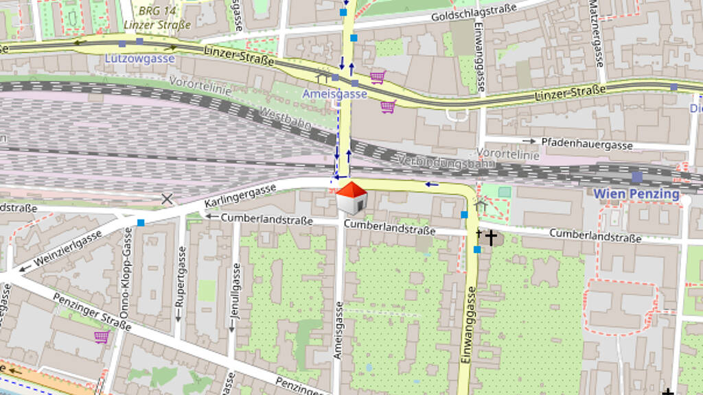 Die Wohnung ist öffentlich bestens eingebunden. Straßenbahnen (59, 52) sowie der Bahnhof Penzing sind fußläufig schnell erreichbar, ebenso alle Geschäfte des täglichen Bedarfs (Supermarkt, Fitnessstudio, etc.).