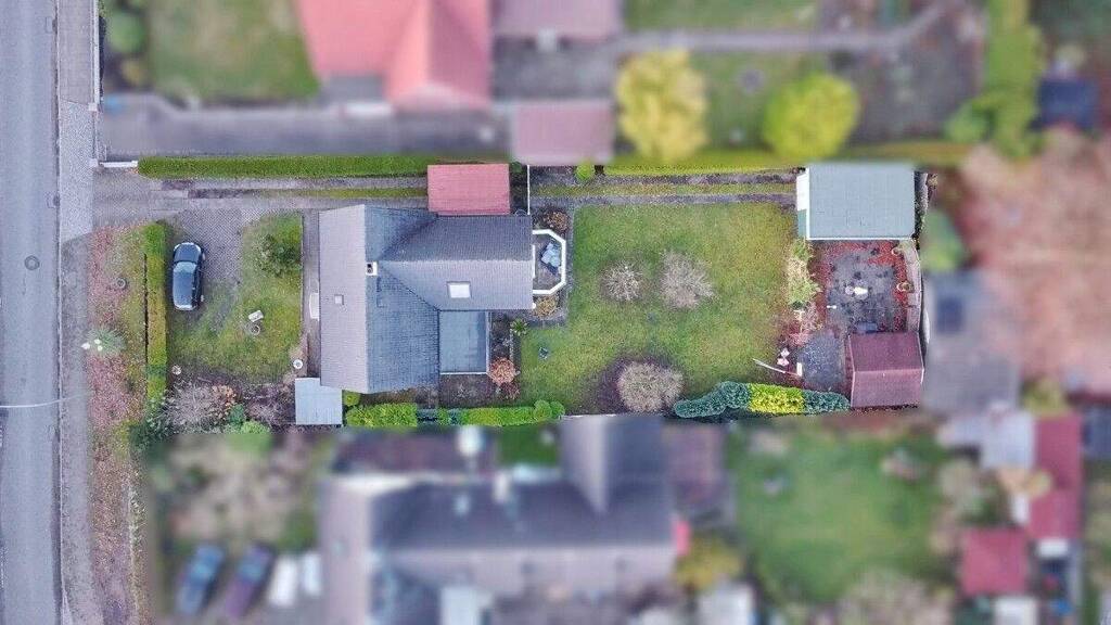 Im Haus empfängt Sie ein Hauseingangsflur, von dem aus Sie die Wohnräume im Erdgeschoss sowie die Räumlichkeiten im Dachgeschoss erreichen. Das Erdgeschoss bietet neben dem 1959 angebauten Wohnzimmer zusätzlich zwei Schlafzimmer, eine Küche und ein Vollbad. Außerdem gelangt man von hier aus in den Teilkeller, wo sich die 2019 erneuerte Gasheizung befindet und zusätzlicher Stauraum geboten wird. Im Dachgeschoss kann eine separate Wohneinheit abgetrennt werden. Hier befinden sich zwei Schlafzimmer, ein Duschbad, eine Küche sowie ein großes Wohnzimmer mit Balkon nach hinten raus zum Garten.