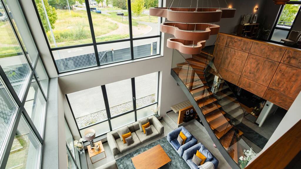 Besonders hervorzuheben ist der luxuriöse Wohnbereich, der mit seiner modernen Ausstattung und eleganten Atmosphäre sowohl für exklusives Wohnen als auch für eine anspruchsvolle Arbeitsumgebung prädestiniert ist.