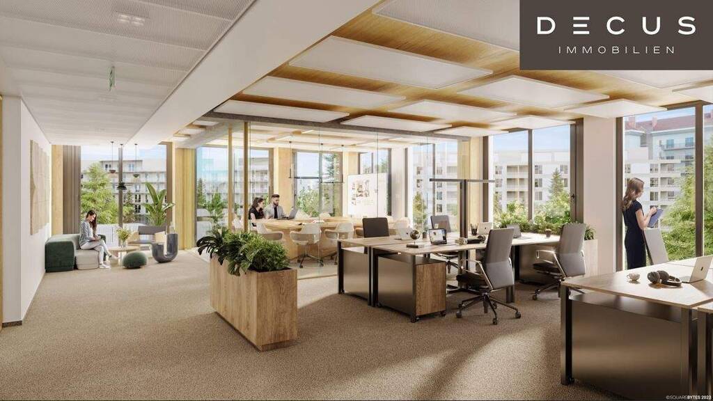 Hohe Decken, natürliche Holzoberflächen und eine flexible Raumeinteilung schaffen die besten Voraussetzungen für ein individuelles Bürokonzept. Moderne Heiz-/Kühlsegel-Technologie sorgt für größtmögliche thermische Behaglichkeit, Stehleuchten mit direktem bzw. indirektem Lichtanteil garantieren zu jeder Tageszeit die richtige Beleuchtung.
