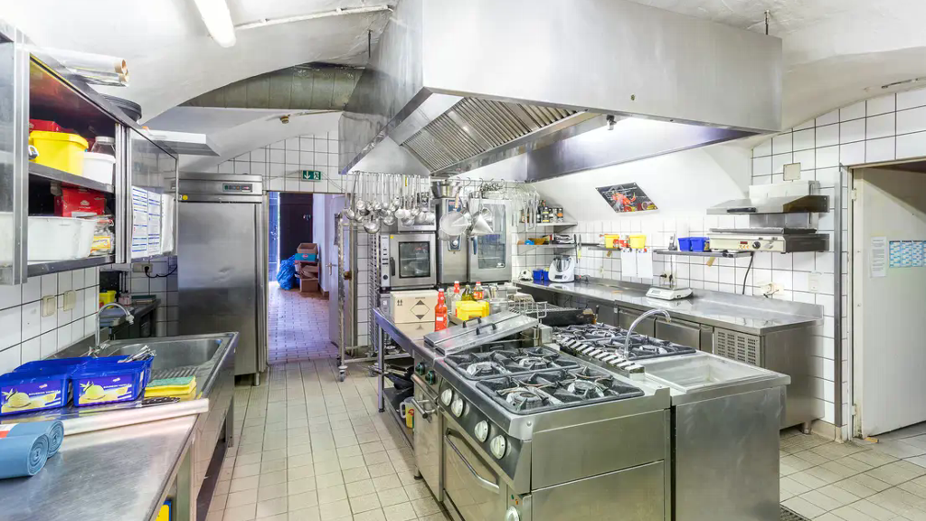 Die Fläche der Küche beträgt 37 m². Zusätzlich stehen Ihnen großzügige Lagermöglichkeiten durch 2 Kühlräume und einen Tiefkühlraum zur Verfügung