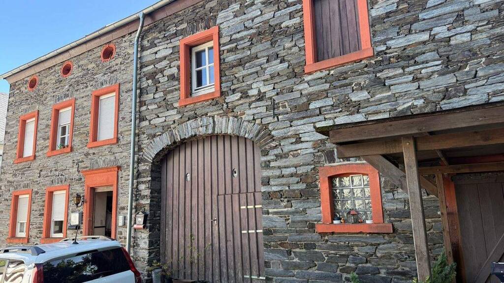 Das Wohnhaus überzeugt durch seine massive Bauweise mit Bruchsteinmauerwerk und einer soliden Substanz. Die klassische Architektur wird durch ein Naturschieferdach unterstrichen, das dem Objekt seinen zeitlosen Charakter verleiht.
