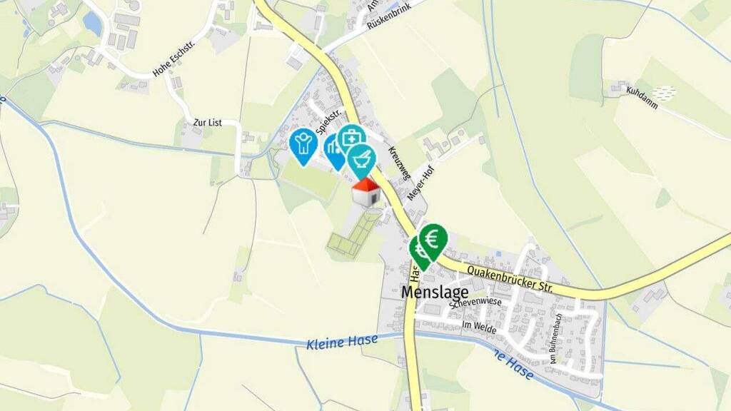 In der Nähe zu Quakenbrück im nördlichen Osnabrücker Land steht dieses ca. 1760 erbaute Haus abseits der Hauptstraße, eingebettet in eine intakte und freundliche Nachbarschaft. Der Ort mit ca. 2.500 Einwohnern bietet Kindergarten, Grundschule und die wesentlichen Nahversorgungseinrichtungen wie Tankstelle, Bäcker, Arzt und Apotheke. Größere Supermärkte gibt es in den angrenzenden Orten. Den Stadtrand von Osnabrück erreichen Sie auch im Berufsverkehr in ca. 35-40 Minuten. Die A1 ist über verschiedene Anschlussstellen gut zu erreichen.