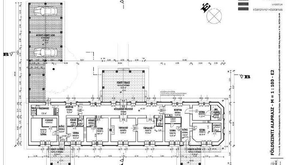 Es schließen sich dem Gebäude drei Terrassen an, von denen die größte 55m2 groß ist. Im Hof befinden sich großgewachsene Kastanien- und Lindenbäume, welche von 500 m² Pflasterstein aus Barabás-Ziegeln und einem großen Grün-Areal umgeben sind.