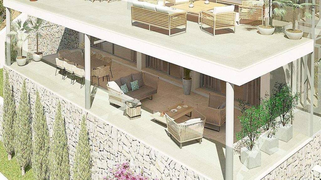 El diseño contemporáneo con tradición mallorquina y las vistas panorámicas al mar y al campo de golf de Canyamel, hacen de esta villa una propiedad de ensueño...El proyecto de nueva construcción está situado en una parcela en la ladera de unos 1.000 m², directamente al lado del impresionante campo de golf Cap Vermell y a poca distancia de una pequeña bahía...Distribuido en tres niveles y 410 m² de espacio habitable, en la primera planta hay tres dormitorios con baños en suite y acceso a una terraza cubierta. En la segunda planta hay una cocina de diseño totalmente equipada, una amplia zona abierta con comedor y sala de estar, un baño, otra habitación que puede utilizarse como oficina u otro dormitorio y también acceso a una terraza cubierta. Las terrazas cubiertas tienen una superficie total de 135 m²...En la planta inferior hay una sala de fitness, una sauna y una bodega. A todas las plantas se puede acceder por escaleras o por ascensor...La piscina se encuentra en la terraza de la azotea, desde donde se tiene una fantástica vista del mar turquesa y del campo de golf...La villa fue construida sólo con materiales de la más alta calidad y es igualmente cautivadora con los muebles de diseño europeo utilizados..