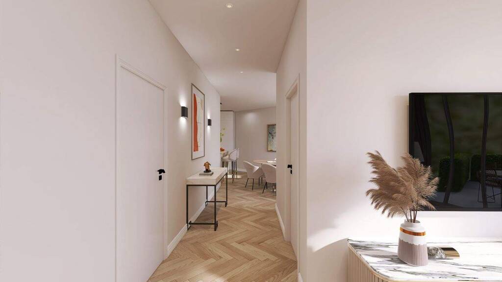 Die Ausstattung der Badezimmer, geprägt durch zeitlose Eleganz, umfasst Elemente von Dornbracht und Villeroy & Boch. Darüber hinaus haben Sie die Möglichkeit, die Bodenbeläge nach Ihren individuellen Wünschen auszuwählen und so Ihr Zuhause ganz persönlich zu gestalten.