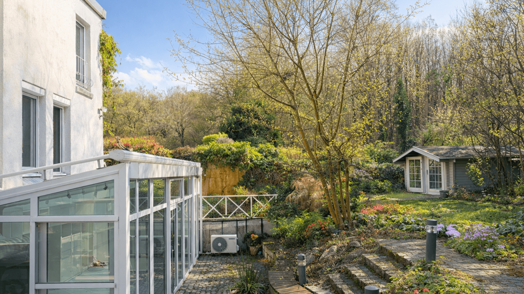 In ruhiger Sackgassenlage direkt am Waldrand gelegen, bietet diese Immobilie eine seltene Kombination aus naturnahem Wohnen und maximaler Ungestörtheit. Das uneinsehbare Grundstück mit ca. 1.253 m² präsentiert sich als liebevoll gestaltete Wohlfühloase mit mehreren Terrassen, einem großzügigen Gartenhaus sowie einem modernen Gewächshaus. Zum Haus gehört eine übergroße Garage mit Sektionaltor sowie einer Wallbox mit 11 kW Ladestrom für ein Elektroauto mit direktem Zugang zum Hausflur.
