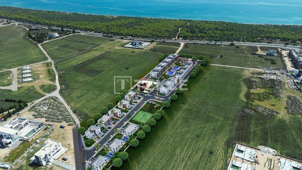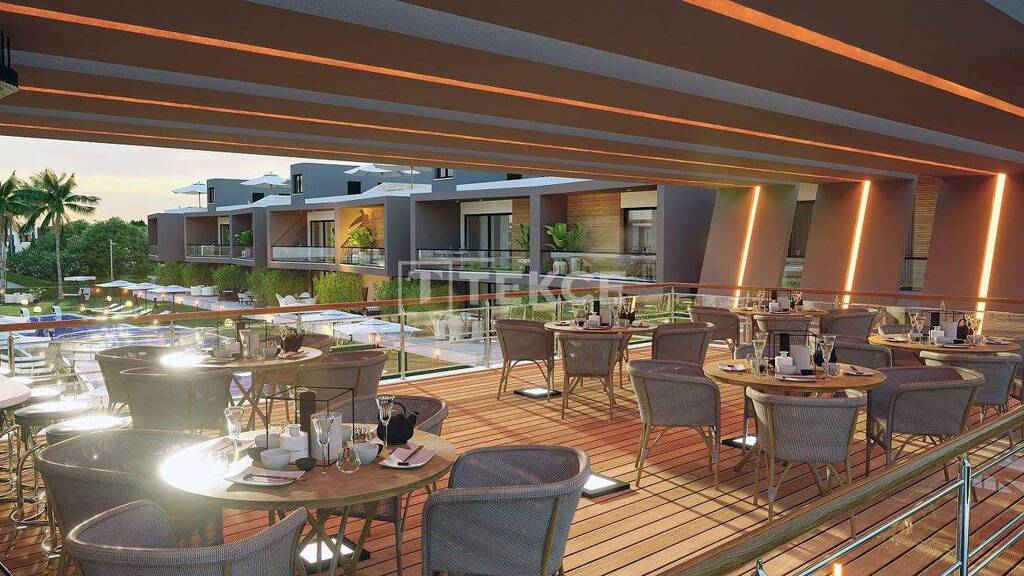 Die Wohnungen Liegen in einem Projekt in Strandnähe in Iskele, Nordzypern, mit einem Pool, Sauna, Fitnessstudio, Tennisplatz, Spielplatz, Restaurant, Verwaltungsdienstleistungen und Außenparkplätze.