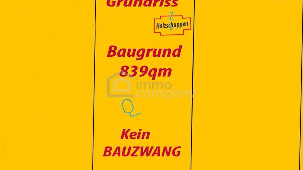 Beste - Lage - Baugrund 839 qm kein Bauzwang - Bauklasse 1 und 2 Gas, Wasser, Strom, Kanal, Glasfaser an der Grundgrenze, die Aufschließungskosten müssen noch bezahlt werden.