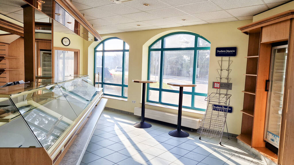 - Wohn- und Geschäftshaus, Baujahr 1995 - heller, moderner Gewerberaum ca. 55 Quadratmeter Gewerbefläche, gute Sichtbarkeit - möblierter Bäckerladen, optional Büro - klimatisierter Vorbereitungsraum - Toilette - Gaszentralheizung - Parkmöglichkeiten am Objekt - gute Verkehrslage, an der Ortsverbindungsstraße Freiberg-Frauenstein, fortführend zur Bundesstraße B171, Haltstelle des Regionalverkehrs unmittelbar am Objekt