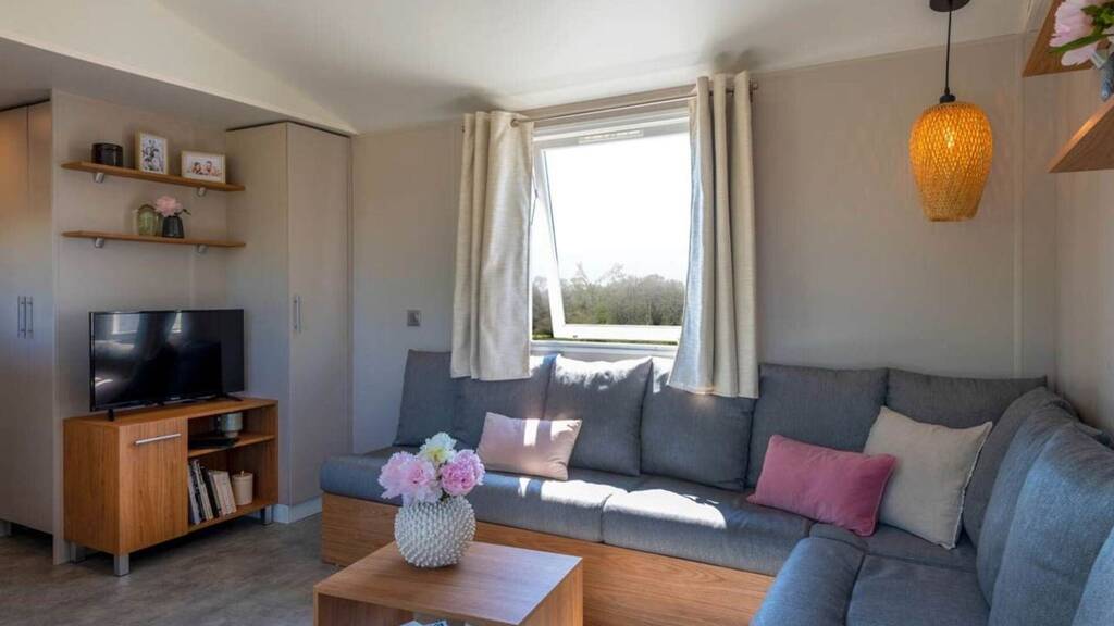 Wohnzimmer Das Wohnzimmer befindet sich in der Mitte des Chalets. Im Wohnzimmer haben Sie ein L-förmiges Sofa.