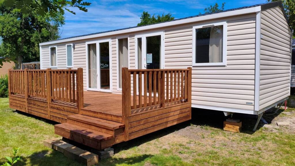 Ein schönes großes Chalet von nicht weniger als 42m2 mit drei Schlafzimmern und 2 Bädern. Exkl Terrasse und Inkl Installation, Transport und Mehrwertsteuer.
