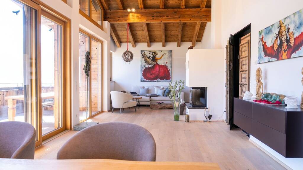 Die moderne Küche lädt zum Kochen ein, während der Wirtschaftsraum zusätzlichen Stauraum bietet. Ein in Vorbereitung befindlicher Sauna- oder Fitnessraum mit eigener Dusche und WC verspricht zukünftig noch mehr Komfort. Technikraum und Doppelgarage ergänzen das Raumangebot. Besonders hervorzuheben sind die große, sonnige Terrasse und der geräumige Balkon, die beide einen unvergleichlichen Blick auf die umliegende Bergwelt ermöglichen.?