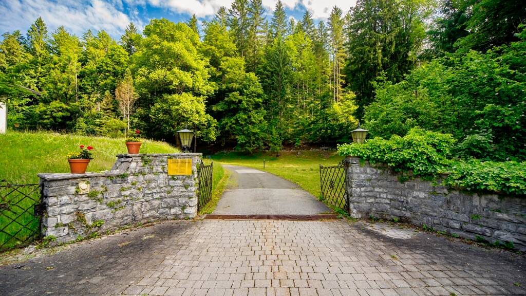 Erbaut um 1906 diente dieses malerisch gelegene Anwesen seinen damaligen Eigentümern als Domizil der sogenannten Sommerfrische. Dichter, Denker, Maler und Musiker versammelten sich zu dieser Zeit gerne in den bayerischen Voralpen und genossen die großartige Kulisse der Berge und die erfrischende Kühle von Wiesen, Wäldern, Bächen und Seen. Mit einer herrlichen Lage inmitten grüner Wiesen, am Waldrand und einem großartigen Ausblick bis zur Zugspitze überwältigt dieses besondere Idyll seine Besucher. Derzeit wird das Haus als Ferienhaus und Pensionsbetrieb genutzt und befindet sich in einem weitgehenden und sehr gepflegten Originalzustand in Bezug auf Fassade, Aufteilung der Räume sowie viele Teile der sehr besonderen Innenausstattung. Architektonisch entspricht das Anwesen einer Landhaus-Villa mit zusätzlichen dekorativen Elementen wie Fresken sowie dem großen Abbild einer Heiligenfigur an der Nordseite. Großzügige Terrassenflächen umgeben das Haupthaus, welches auf einer kleinen Anhöhe liegt, und lassen das parkähnliche Grundstück überblicken. Eine holzvertäfelte Weinstube und ein Salon mit Delfter Kachelwänden laden im Inneren zum Sinnieren, Lesen oder Spielen ein. Ein Speisesaal mit Runderker und ein gemauerter Wintergarten mit Rundumblick befinden sich im erhöhten Erdgeschoss. Sieben Schlafzimmer und sechs Bäder bieten im 1. und 2. Obergeschoss viel Raum für Familie und Gäste.