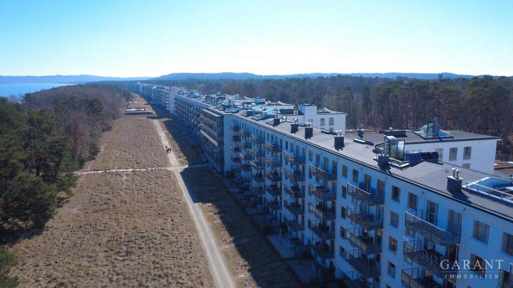 Hinter der denkmalgeschützten Fassade des ehemaligen KdF-Bades entstanden nach einer Kernsanierung im Jahre 2018 hochwertige Wohnungen. Die zum Verkauf stehende Ferienwohnung befindet sich im Block drei in erster Reihe, unverbaubar zur Ostsee. Von der großen Ostterrasse haben Sie einen direkten Zugang zum feinsandigen Strand. Die Terrasse bietet nicht nur Platz für ein paar Liegen, sondern hier können Sie auch mit der ganzen Familie essen und das bei herrlichem Meeresrauschen.