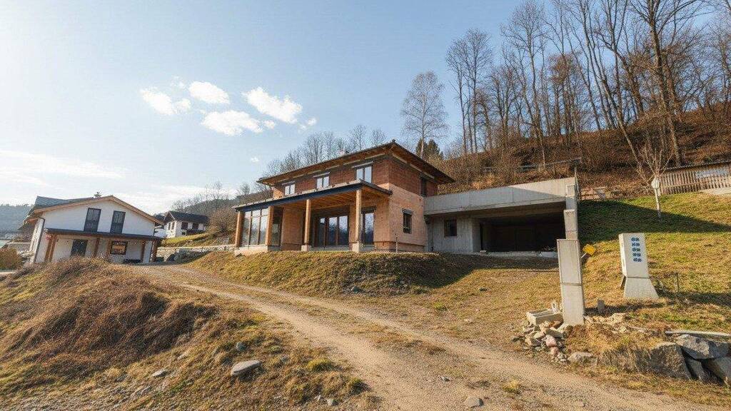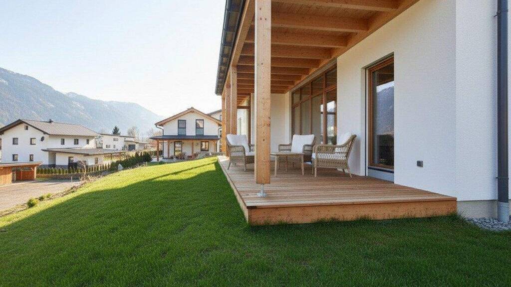 Die Umgebung präsentiert sich gepflegt und hochwertig, geprägt von mehreren neu errichteten Einfamilienhäusern. Diese gewachsene Neubau-Nachbarschaft unterstreicht die nachhaltige Werterhaltung des Standortes und macht das Objekt sowohl für Eigennutzer als auch für langfristig denkende Käufer attraktiv. Große Fensterflächen bieten sich an, um den unverbaubaren Blick auf die Täler und die umliegende Bergwelt bewusst in das Wohnkonzept einzubinden.