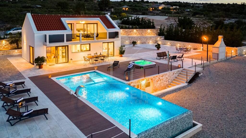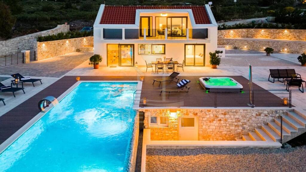 Kurzbeschreibung luxusvilla-brac-neubau-moebliert Objekt Diese luxuriöse Neubauvilla mit 4* verkörpert das Inselleben in seiner besten Form. Genießen Sie unvergessliche Sonnenuntergänge mit atemberaubendem Panorama-Meerblick von Ihrem großzügigen Balkon oder der Terrasse aus. Der glitzernde Swimmingpool bietet Ihnen die perfekte Möglichkeit, an heißen Tagen zu entspannen und die mediterrane Sonne zu genießen. Das Anwesen wird von einem großen Olivenhain umgeben, der nicht nur für frisches Olivenöl sorgt, sondern auch eine ruhige Atmosphäre schafft, die Ihren Alltag bereichert. Mit einer hochwertigen Ausstattung und luxuriösen Möbeln, die im Verkauf enthalten sind, können Sie sofort einziehen und das komfortable Leben auf Brac genießen. Diese Villa ist nicht nur ein Zuhause, sondern auch eine Investition in eine Lebensweise voller Schönheit und Harmonie. Lassen Sie sich diese außergewöhnliche Gelegenheit nicht entgehen und machen Sie den ersten Schritt zu Ihrem Traumleben. Kontaktieren Sie uns noch heute!