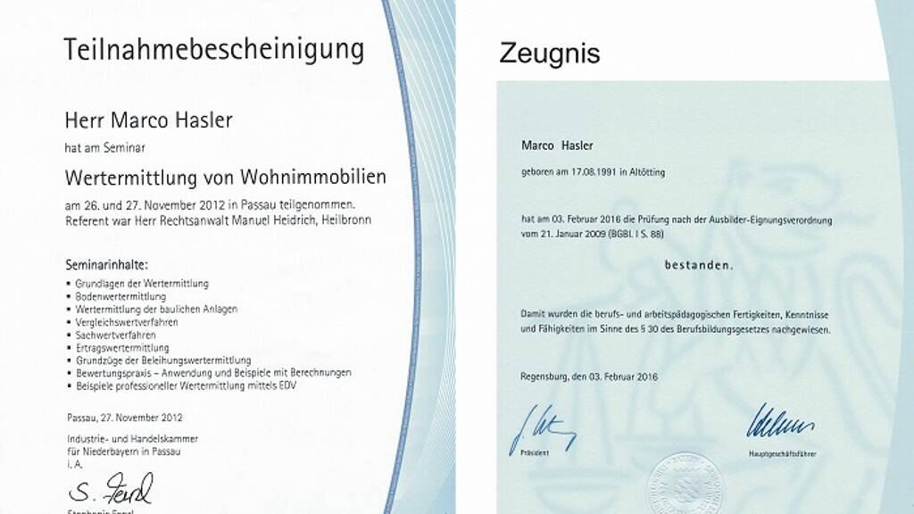 Unternehmensdaten – Links Weitere Angebote finden Sie auf unserer Webseite - Allgemein: www.immobilien-hasler.de Webseite - Immobilienmarkwertermittlung: www.immomarktwert.de Webseite - Immobilienleitfaden: www.immobilienleitfaden.com Gerne können Sie uns auch anrufen oder Sie schreiben uns ganz einfach eine E-Mail. Tel.: 08571/98345-0 Tel.: 08571/5679 Mobil: 0171/3607668 E-mail: info@immobilien-hasler.de Bei uns ist Ihr Objekt in besten Händen. Immobilien Hasler Immobilien Hasler Verkauf - Ankauf - Vermietung - Hausverwaltung Adolf-Kolping-Str. 3 84359 Simbach am Inn Tel. 08571/98345-0 Tel. 08571/5679 Fax: 08571/98345-20 Mobil: 0171/3607668 E-mail: info@immobilien-hasler.de unsere Internetseite: www.immobilien-hasler.de unsere Internetseite: www.hasler-hausverwaltung.de unsere Internetseite: www.hasler-immobilien.de unsere Internetseite: www.hausverwaltung-hasler.de unsere Internetseite: www.immo-inn.de unsere Internetseite: www.immobilien-hasler.com unsere Internetseite: www.hasler-hausverwaltung.de unsere Internetseite: www.immobilienannonce.de unsere Internetseite: www.immobilientrader.com Immobilienmarktwertermittlung: www.immobilienmarktwert.com Immobilienmarktwertermittlung: www.immomarktwert.de Immobilienleitfaden: www.immobilienleitfaden.com Immobilienleitfaden: www.hasleruniversity.com Immobilienleitfaden: www.hasleruniversity.de ImmobilienScout24: https://www.immobilienscout24.de/anbieter/profil/immobilien-hasler ImmoWelt: http://www.immowelt.de/profil/immobilien-hasler ImmoNet: http://www.immonet.de/immobilienmakler/408504.html Facebook: https://www.facebook.com/Immobilien.Hasler Twitter: https://twitter.com/ImmoHasler Kleinanzeigen: https://www.kleinanzeigen.de/pro/Immobilien-Hasler-Verkauf-Ankauf-Vermietung-Hausverwaltung Instagram Immobilien Hasler: www.www.instagram.com/immobilienhasler Instagram Immobilienleitfaden: www.instagram.com/immobilienleitfaden Instagram Immobilienmarktwert: https://www.instagram.com/immobilienmarktwert Instagram Hausverwaltung Hasler: https://www.instagram.com/hausverwaltunghasler Youtube: https://www.youtube.com/@immobilienhasler Matterport – Immobilien Hasler: https://discover.matterport.com/account/UfthsjWfXEM?edit=true unsere AGBs und die Widerrufsbelehrung für Verbraucher https://www.immobilien-hasler.de/agb.php unsere Datenschutzerklärung https://www.immobilien-hasler.de/datenschutz.php unser Impressum https://www.immobilien-hasler.de/impressum.php Herr Marco Hasler Geprüfter Immobilienkaufmann (IHK) Geprüfter Immobilienfachwirt (IHK) Zertifizierter Verwalter Bachelor Professional of Real Estate Management (CCI) ADA-Schein (Ausbildereignungsprüfung) (IHK) DEKRA zertifizierter Immobilienbewerter für Standardobjekte DEKRA zertifizierter Sachverständiger für Immobilienbewertung D1 für Standardobjekte mit DEKRA-Siegel