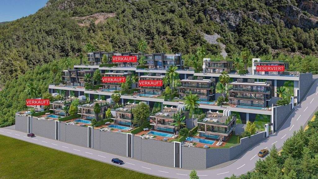 Auf einem mehr als 13.000 m² großen Grundstück, in einer der besten und unwiederbringlichen Lagen entstehen gerade 16 exklusive, autonome Villen. Jede einzelne ist ein Meisterwerk ihrer architektonischen Zeit und bietet eine harmonische Symbiose aus Luxus, Eleganz und Privatsphäre. Bereits beim Betreten wird Ihnen die nach oben offene Eingangshalle das Gefühl geben, alles richtig gemacht zu haben. Der großzügige Wohnbereich fügt sich nahtlos an den Küchen- und Essbereich an. Dank der modernen Fensterfronten haben Sie eine fantastische Belichtung und gleichzeitig das Gefühl, dass Ihnen das Schauspiel der malerischen Zusammenkunft von Natur, Berge und Meer in Ihre Räumlichkeiten geholt wird. Im Obergeschoss erwarten Sie drei vollwertige Schlafzimmer (zwei mit Balkon), alle Schlafzimmer sind mit Bad en Suite und eigenem Ankleidezimmer ausgestattet. Ein weiteres Highlight ist Ihre ca. 180 m² große Dachterrasse. Einfach entspannen, den umliegenden Blick genießen und abschalten. Und wem das nicht reicht, hat im Gartengeschoss einen weiteren Partyraum mit Zugang zum eigenen Pool und Garten, je eine Sauna & Dampf-Sauna, ein Hamam und ein Massagezimmer.