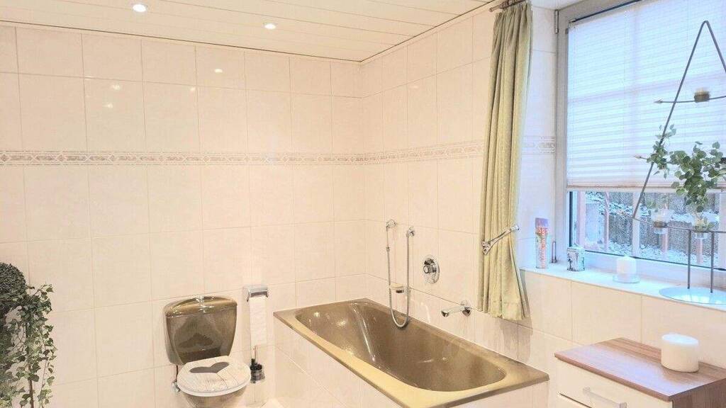 Das teilunterkellerte Kellergeschoss bietet zusätzlichen, wohnlich nutzbaren Raum. Hier befinden sich ein Tageslichtbad mit Wanne und Dusche, ein weiteres Kinder- bzw. Arbeitszimmer sowie ein Abstell- bzw. Hauswirtschaftskeller. Auch diese Ebene ist vollständig gefliest und vielseitig nutzbar, etwa für Gäste, Homeoffice oder Hobbyzwecke.