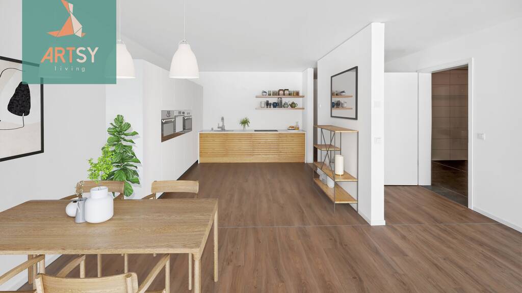 Kunst im Objekt - Die exklusive Kombination, die aus Wohnungen künstlerisch gestaltete Lebensräume macht, begeistert neben der perfekten Lage mit modernster Architektur. Innen wie außen beeindrucken außergewöhnliche Gestaltung, innovative Technologien, Komfort und Weitläufigkeit. In Foyer und Wohnungen finden sich Kunstwerke des Vereins Junge Kunst und dem Künstlerpaar Katharina Kühne und Steve Luxembourg - Landschaften, die ebenso außergewöhnlich sind, wie die Idee einer Kunstausstellung im Wohn-Neubau.