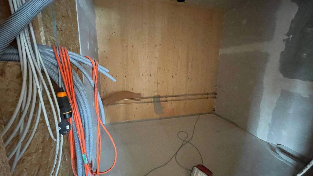 Die Raumaufteilung kann in Absprache mit dem Eigentümer den erforderlichen Ansprüchen weitestgehend angepasst werden. Der Bau befindet sich derzeit kurz vor der Fertigstellung. Siehe auch beiliegender OG-Grundrissplan (gelber unterer Bereich!).