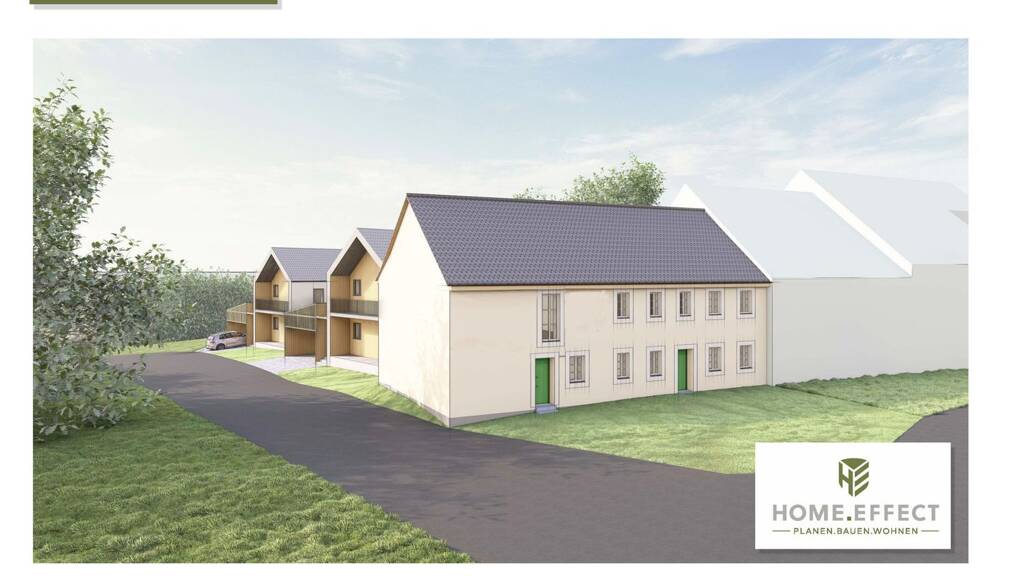 Abgerundet wird das Projekt durch zwei freistehende Einfamilienhäuser mit Carport, die sich harmonisch in das Gesamtbild einfügen. Die Neubauten greifen regionale Bauformen auf und schaffen ein authentisches Wohnumfeld mit hoher Lebensqualität – ein stimmiger Dialog zwischen Geschichte und Moderne.