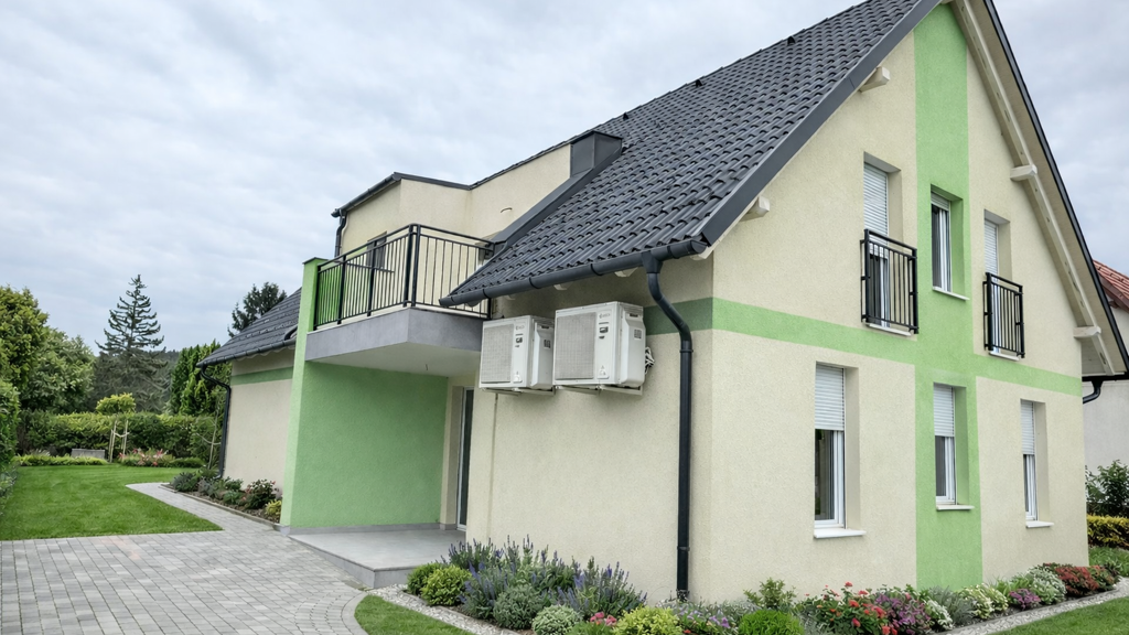 Errichtet 2026 aus wärmegedämmten Porotherm-Ziegeln mit monolithischer Stahlbetondecke und Bramac-Betondachziegeln Dach, Wände und Erdgeschossboden sind gedämmt Fenster aus hochwärmegedämmtem Kunststoff mit verstärkter Luftdichtheit; natürliche Belüftung in allen Räumen Beheizung über elektrische Fußbodenheizung und klimatisierte Heizgeräte, Warmwasser durch elektrische Boiler Wasser-, Strom- und Abwasseranschlüsse vorhanden; Gasanschluss auf dem Grundstück, Glasfaserkabel in der Straße verfügbar