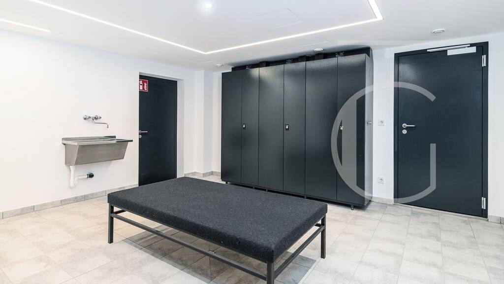 Betritt man die Wohnung im unteren Geschoss, so erreicht man den großzügigen Garderobenbereich mit angeschlossenem Gäste WC. Auf dieser Etage befindet sich das Masterschlafzimmer mit Masterbadezimmer, ausgestattet mit freistehender Badewanne und Sauna. Des Weiteren befindet sich auf dieser Ebene ein zweites Schlafzimmer mit Bad ensuite. Beide Schlafzimmer verfügen über einen Zugang in den großzügigen Garten.