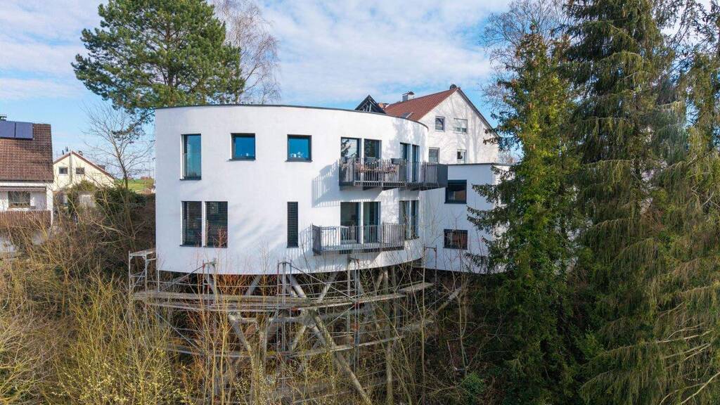 Willkommen in einem einzigartigen Architektenhaus, das mit seiner runden Form und der Bauweise auf Stelzen nicht nur durch seine außergewöhnliche Gestaltung besticht, sondern auch durch eine Wohnatmosphäre, die zum Verweilen einlädt. Hier treffen modernes Design, intelligente Planung und ein hoher Anspruch an Komfort und Stil aufeinander. Ein echtes architektonisches Meisterwerk. Diese Immobilie ist ein architektonisches Unikat mit starkem Wiedererkennungswert – in ihrer Form im gesamten Heilbronner Raum absolut einmalig. Die runde Bauweise erforderte eine außerordentlich präzise Planung sowie millimetergenaues Arbeiten, was die Qualität und das durchdachte Gesamtkonzept dieses Hauses unterstreicht. Die Kombination aus avantgardistischem Design und hochwertiger Bauausführung macht dieses Objekt zu einer echten Rarität.